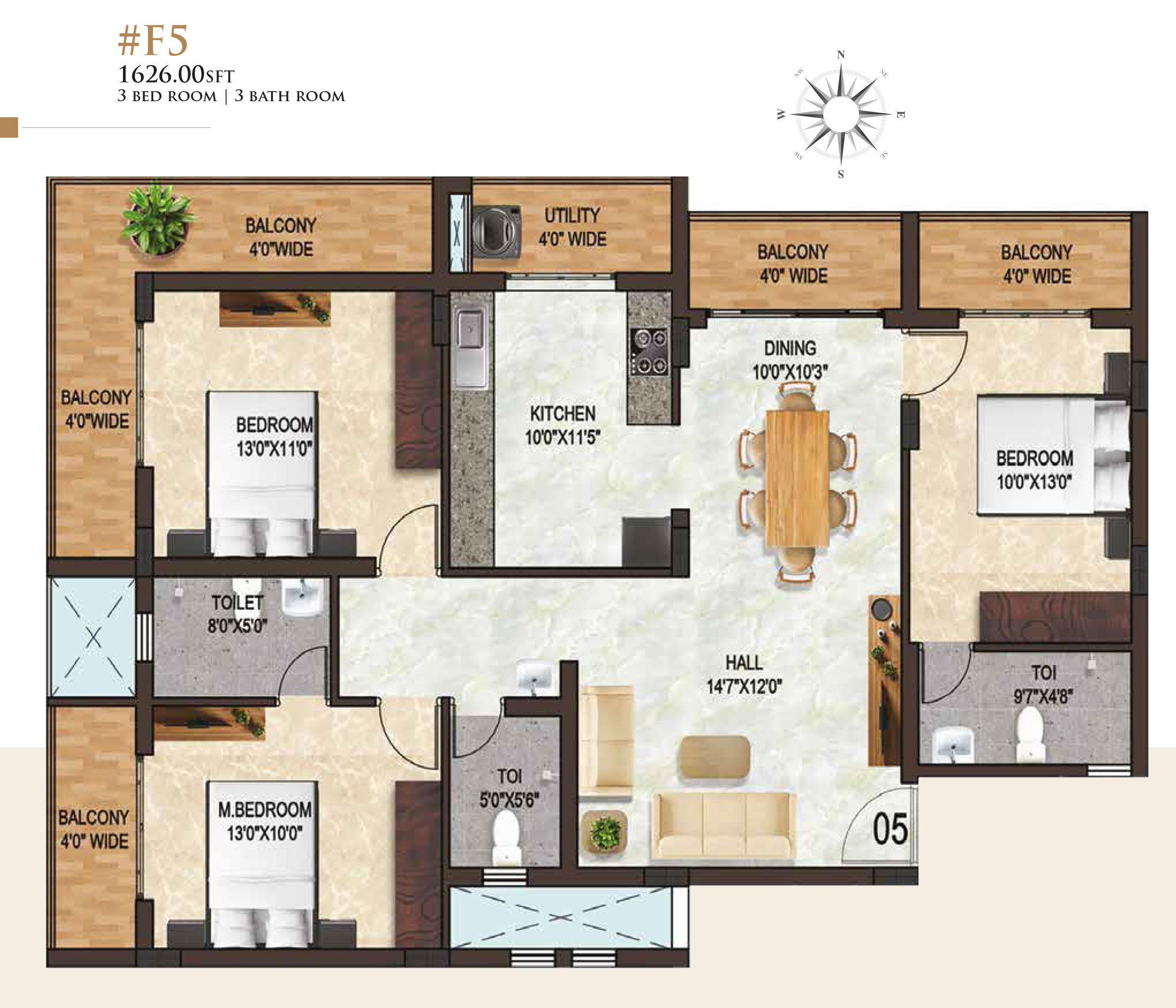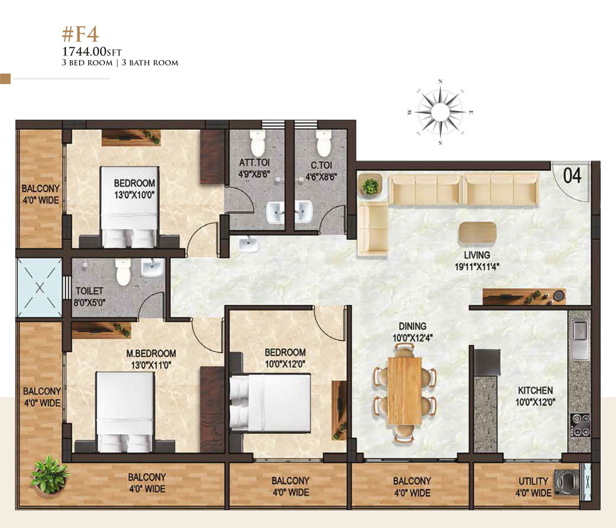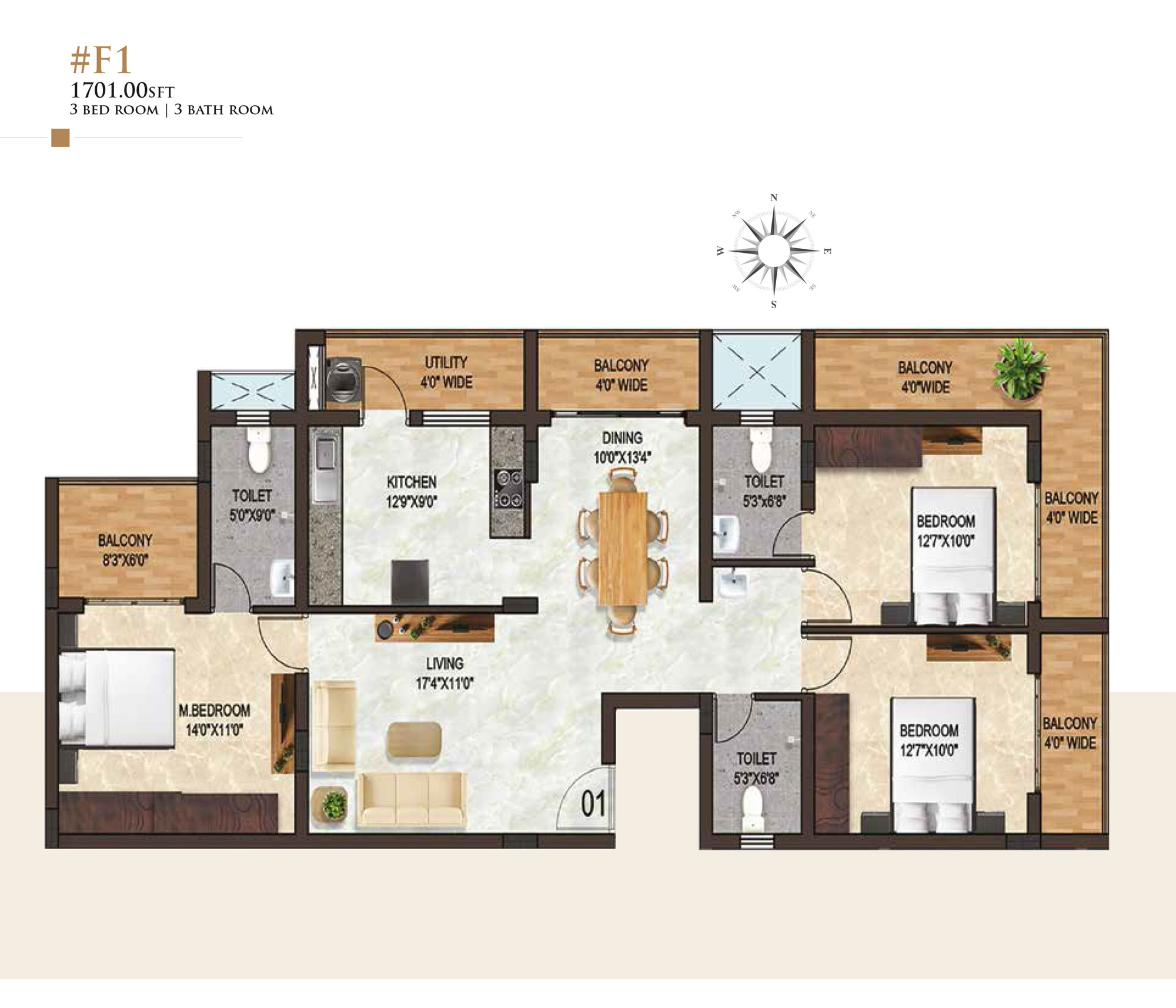 The apartments at Laxmi Govind have been planned to suit modern urban families. Living and dining areas are kept open and welcoming, while bedrooms are placed for privacy. Adequate balconies extend the usable space, offering room for seating, plants or utility needs depending on the unit.
